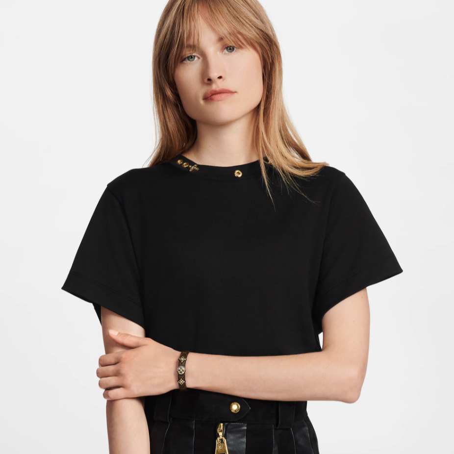 The Blooming bracelet highlights several signature details in one playful accessory. Crafted from Monogram canvas. it showcases a gold-tone metal Monogram Flower motif and matching trunk-inspired studs. recalling the House's luggage-making heritage. The studs feature a delicately-engraved signature .